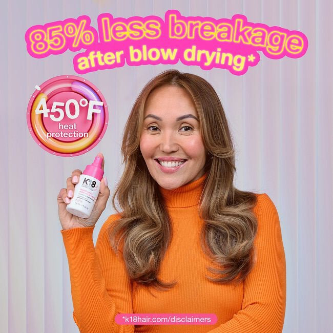 K18 HeatBounce is a salon-essential heat protectant that goes beyond surface-level defense. Powered by Resilicore™ Heat-Shielding Technology, this weightless conditioning heat protectant formula defends hair from heat up to 450°F (232°C) degrees from the inside out, mechanical and UV environmental damage—while locking in moisture for smooth, healthy, vibrant results. Ideal for all hair types and essential for daily use behind the chair.
