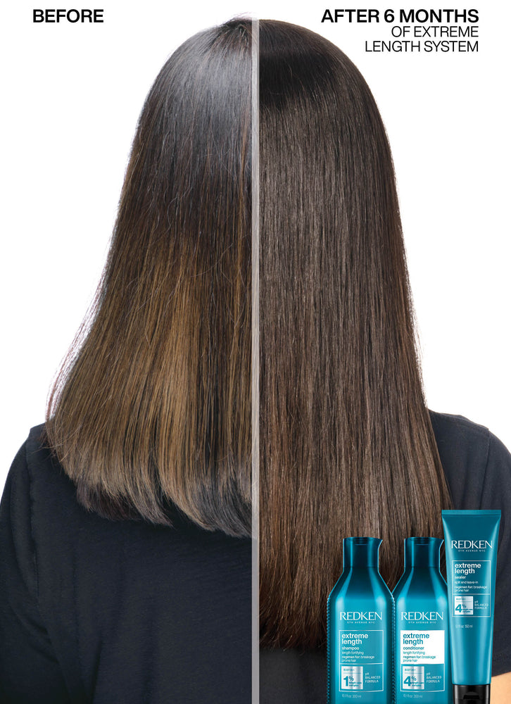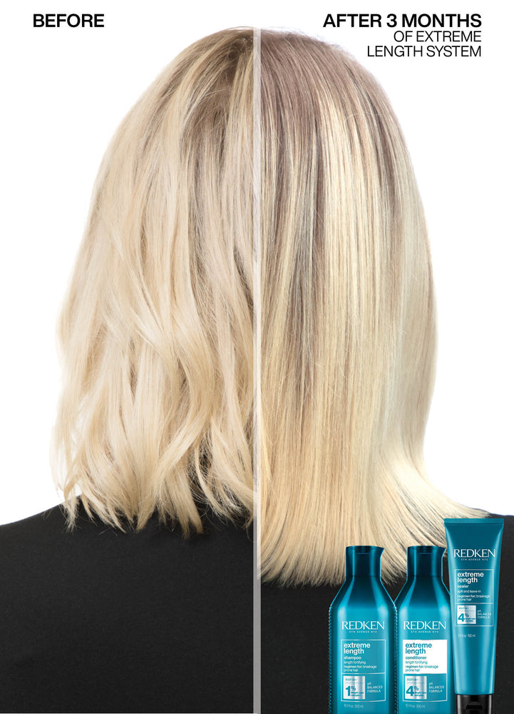 Transform your hair from weak and brittle to strong and beautiful with Redken Extreme Length Conditioner. Embrace the journey to longer, healthier hair!